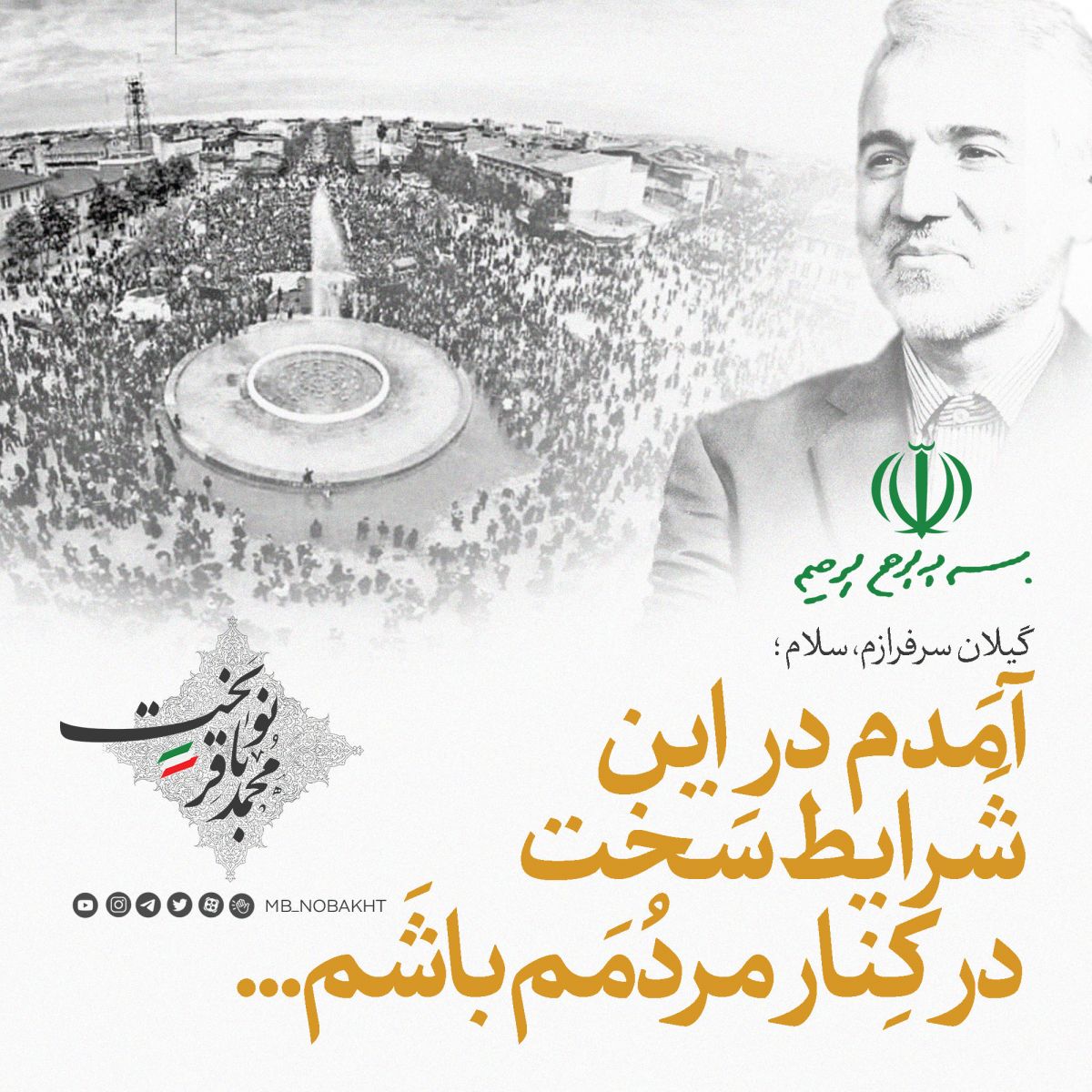 دکتر محمد باقر نوبخت دبیر کل حزب اعتدال و توسعه با انتشار پستی در اکانت اینستاگرام خود از تغییر حوزه انتخابیه از تهران به شهرستان های رشت و خمام جهت شرکت در دوازدهمین انتخابات مجلس شورای اسلامی خبر داد.